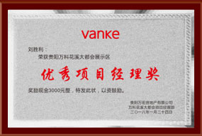 • 2019年荣获万科花溪项目A区突出贡献奖